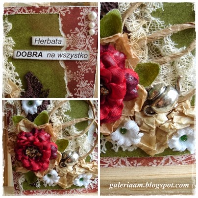 Papierki z Galerii Papieru, koronka gaza i gnieciony papierek ufarbowany herbatą..